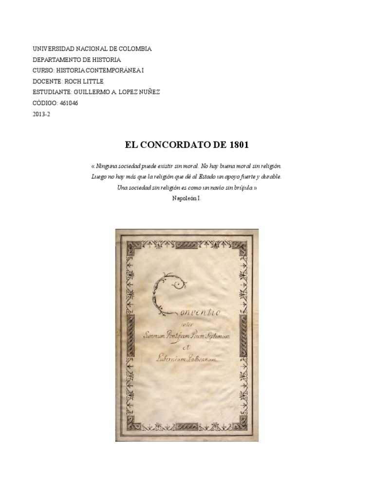 For faster navigation, this iframe is preloading the wikiwand page for concordato de 1801. Convention entre sa sainteté pie vii et le gouvernement français. Las diversas teorías se explicarán más adelante, pero en aras de una discusión ordenada se establecerá al menos una definición nominal. Concordato de 1801 , acuerdo alcanzado el 15 de julio de 1801 entre napoleón bonaparte y representantes papales y clericales tanto en roma como en parís, definiendo el estatus de la iglesia. Ninguna sociedad puede existir sin moral.